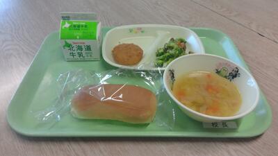今日は新1年生にとって小学校で初めて食べる給食でした。