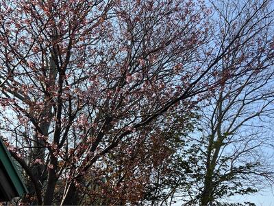 右は校舎脇の土手にたつ桜で、ほぼ満開です。