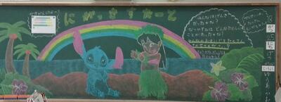 こんな素敵な黒板アートやメッセージが子どもたちを出迎えていました。
