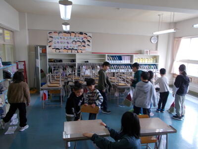 小グループになってすべての6年生が先生になって5年生に教えます。