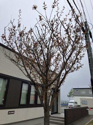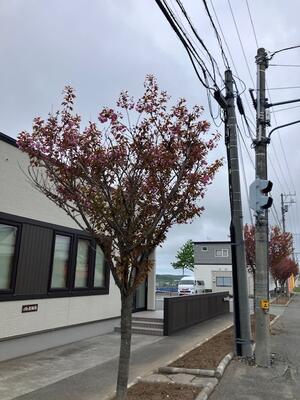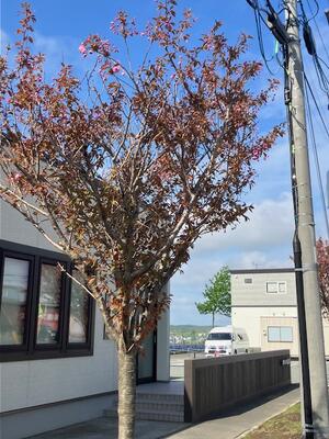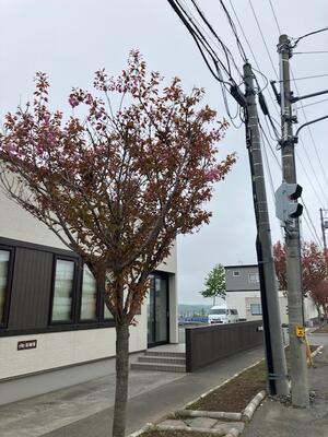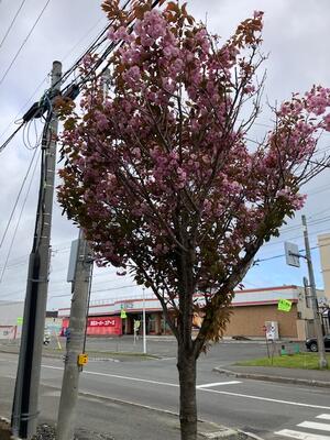 木の種類を調べたところ「エゾ八重桜」で大分ゆっくり咲く品種らしいです。