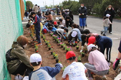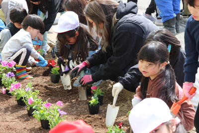そして給食の後はPTAの皆さんと子どもたちで花壇に花を植えました。