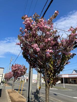 久しぶりの青空の稚内。青い空に満開のエゾ八重桜が映えます。