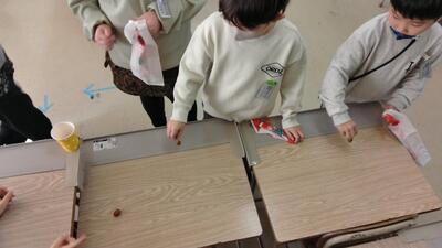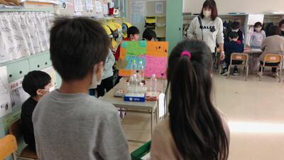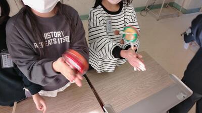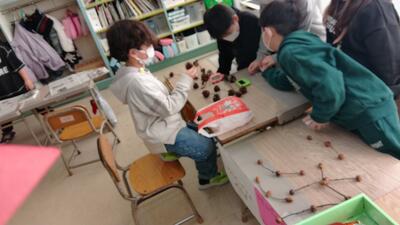 おもちゃひろばへようこそ 投稿: 校長 (12:35) カテゴリー: 今日の出来事 今日は1年生の生活科「あきのみのおもちゃひろば」が開かれました。 枯れ葉やまつぼっくり、どんぐりなどでいろんなおもちゃを作り、 2年生や先生方を招待してくれました。 どんぐりの独楽や、松ぼっくりのやじろべえ。枯れ葉をトレーシングペーパーで写し絵。 ストラックアウトやでんでん太鼓、マラカスなどいろいろ工夫されたおもちゃで楽しむことができました。 なんと言っても1年生がしっかり受け答えしたり、 遊びの説明をする姿がとても良かったです。 Tweet -