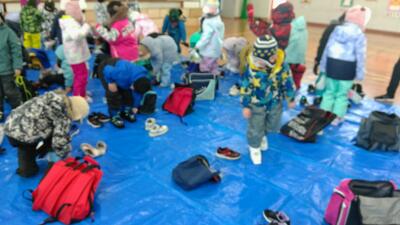 冬休みにスキー靴を履く練習をしてきましょうと呼びかけていました。