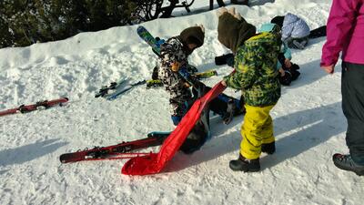 さらに外でスキーをケースから出す練習や片付ける練習もしました。