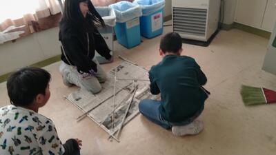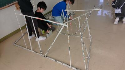 4年生の図工は新聞紙でつくった棒を組み立てる造形の授業でした。