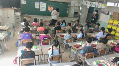 今日は新1年生にとって小学校で初めて食べる給食でした。
