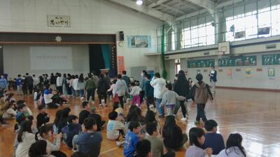 上級生が考えてくれた「潮小生なら誰でもわかる〇×クイズに挑戦してとても盛り上がっていました。